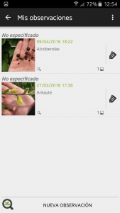 Nueva observación: Aquí podemos identificar las especies mediante con las fotos disponibles en nuestra galería y fotos tomadas en el momento.